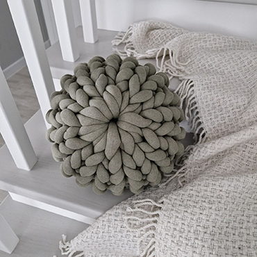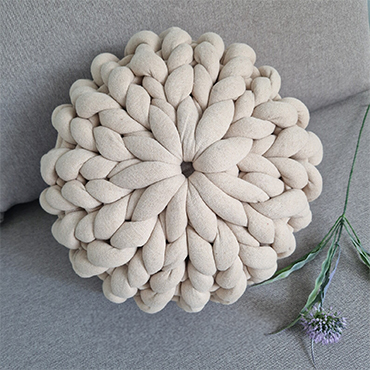 Round handmade knotted pillow.