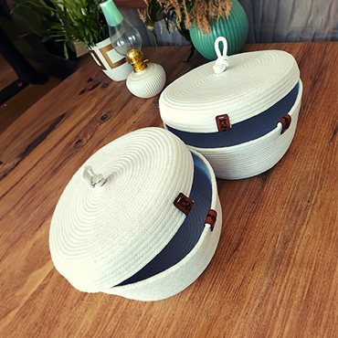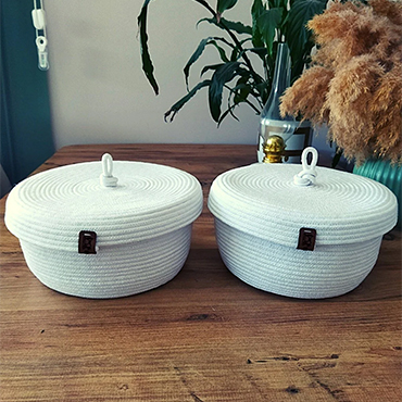 Introducing our artisan-crafted cotton thread/ jute thread handmade baskets, adding a touch of bohemian charm to your dining experience. Elevate your table setting with these stylish and functional pieces, perfect for serving bread in style.